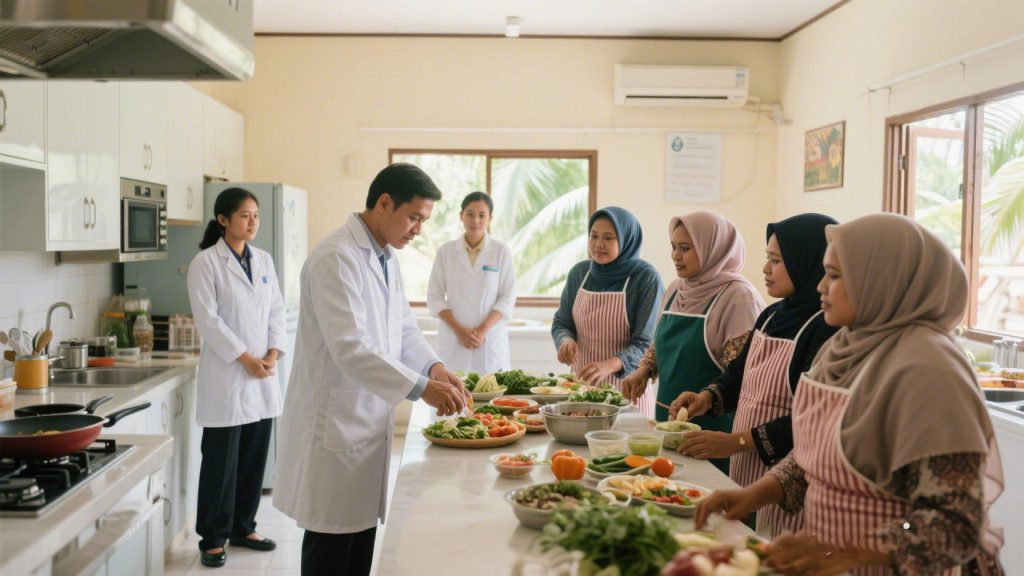 Mengembangkan dan melaksanakan sistem pelatihan terintegrasi berbasis kurikulum, LMS, dan training kitchen, termasuk pelatihan berjenjang, sertifikasi pelatih, serta on-the-job training bagi pemangku kepentingan